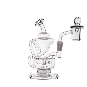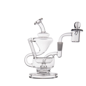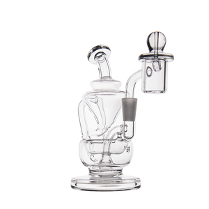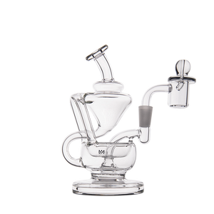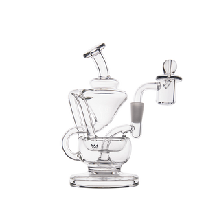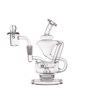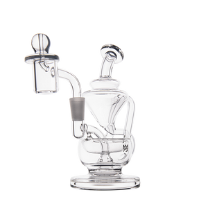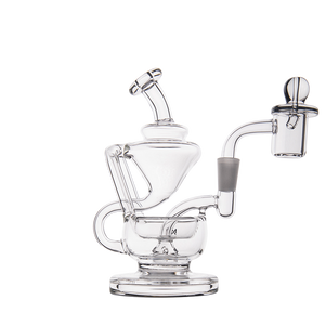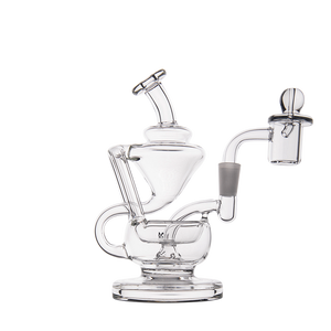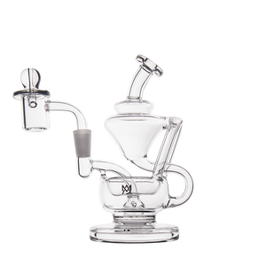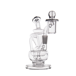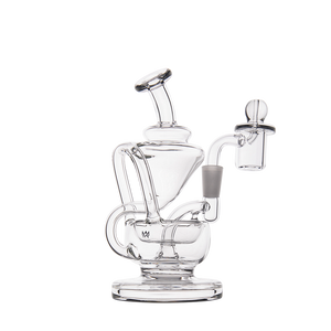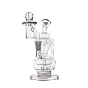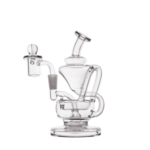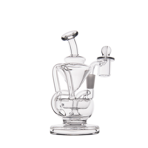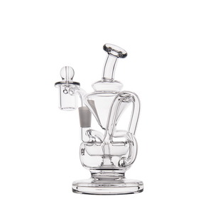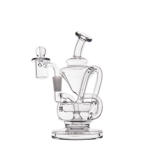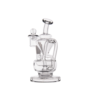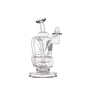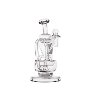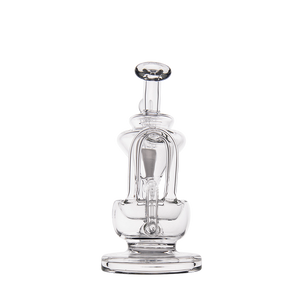 The Claude Mini Dab Rig by MJ Arsenal is a compact recycler rig inspired by Roman aqueduct engineering. Featuring dual turbine chambers, a double uptake recycler, and built-in oil catcher, it delivers ultra smooth and flavorful vapor through innovative water filtration. Made from durable borosilicate glass, the Claude combines performance with elegance thanks to its curved arms, wide base, and splash resistant design. Easy to clean and built for daily use, it's perfect for those seeking powerful hits and refined aesthetics in a portable rig.