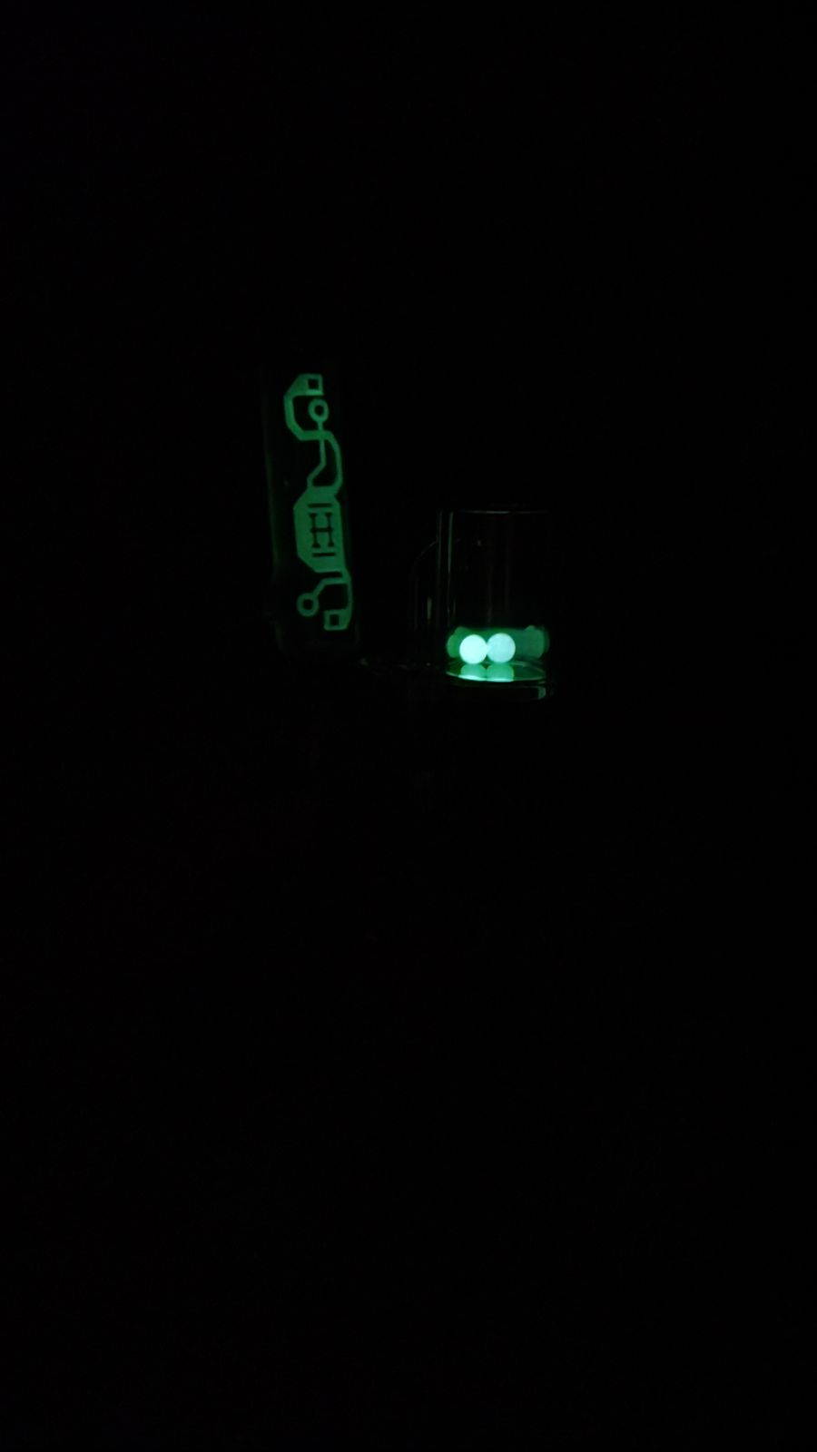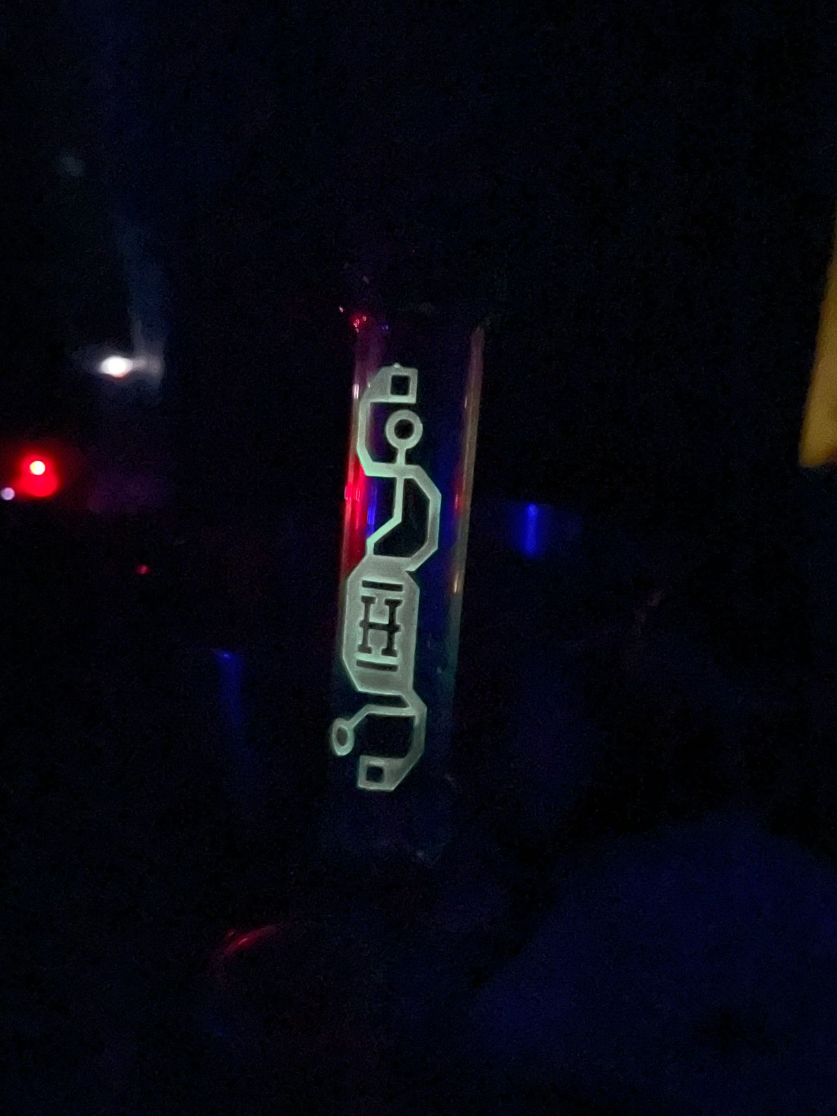 Well at first glance this thing looks wicked cool small compact size with some cool glow in the dark cyberpunk lookin thing decal . Well when i did received this bong i was super excited to try it out one summer night and well unfortunate for me it sadly did not glow at all and then i thought maybe it needed some light to try and make it work and after holding it to a lamp for 3 minutes when i went into a dark area it still didnt glow like i thought it would. Then lastly i thought lets try black light and tho it did slightly work i was still disappointed the other attemps without a black light.