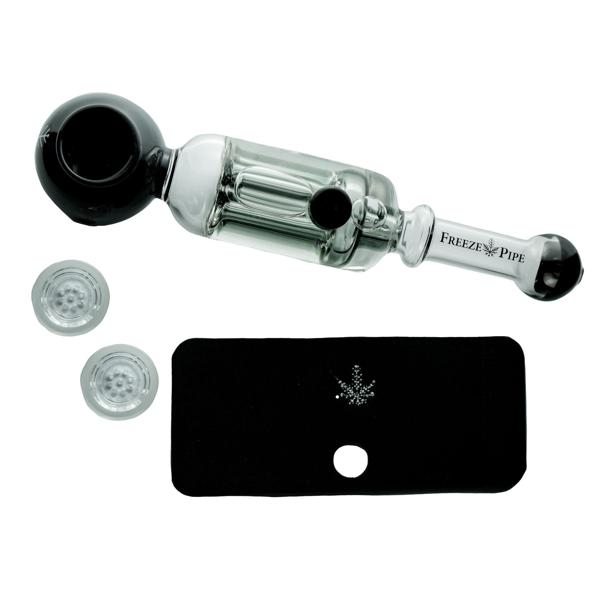 The Freeze Pipe Revolver is a glass hand pipe featuring Freeze Pipe's 3rd generation glycerin chamber. When smoke passes through the frozen chamber's four separate revolver tubes, it’s instantly cooled resulting in an impressively smooth and clean toke for a hand pipe. The Revolver design allows for more surface area interaction for cooler hits as well as easy cleaning.