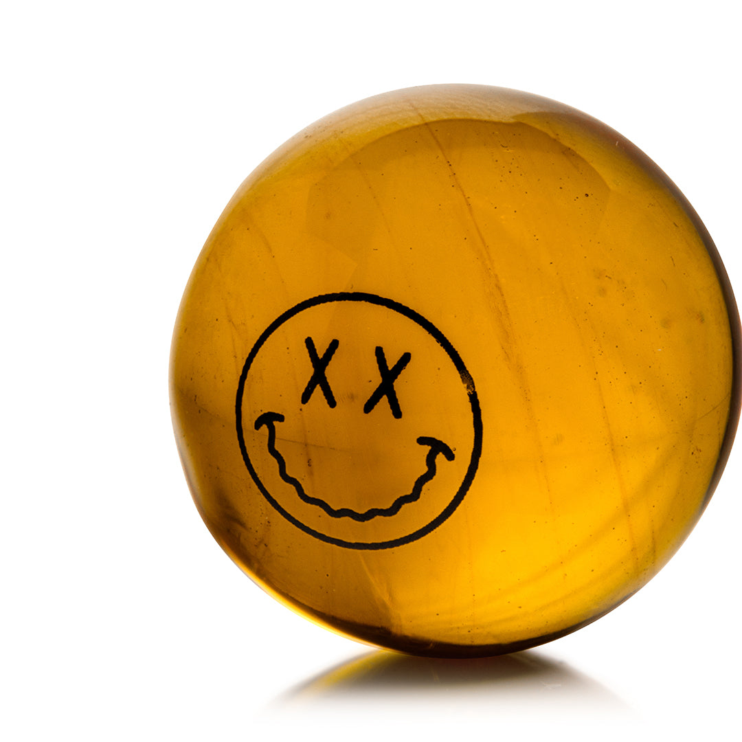 - Large Yellow Glass Marble w/ Goody Face Decal