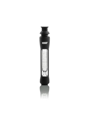 This simple, compact device is designed to pack small bowls on the go. With a cap to keep your flower in place on the go and a filter-like pinch to catch ash, you can plan on keeping everything where it needs to be when you're smoking on the go. Pocket-sized and silicone wrapped, the borosilicate core is perfectly protected from any accidental drops!