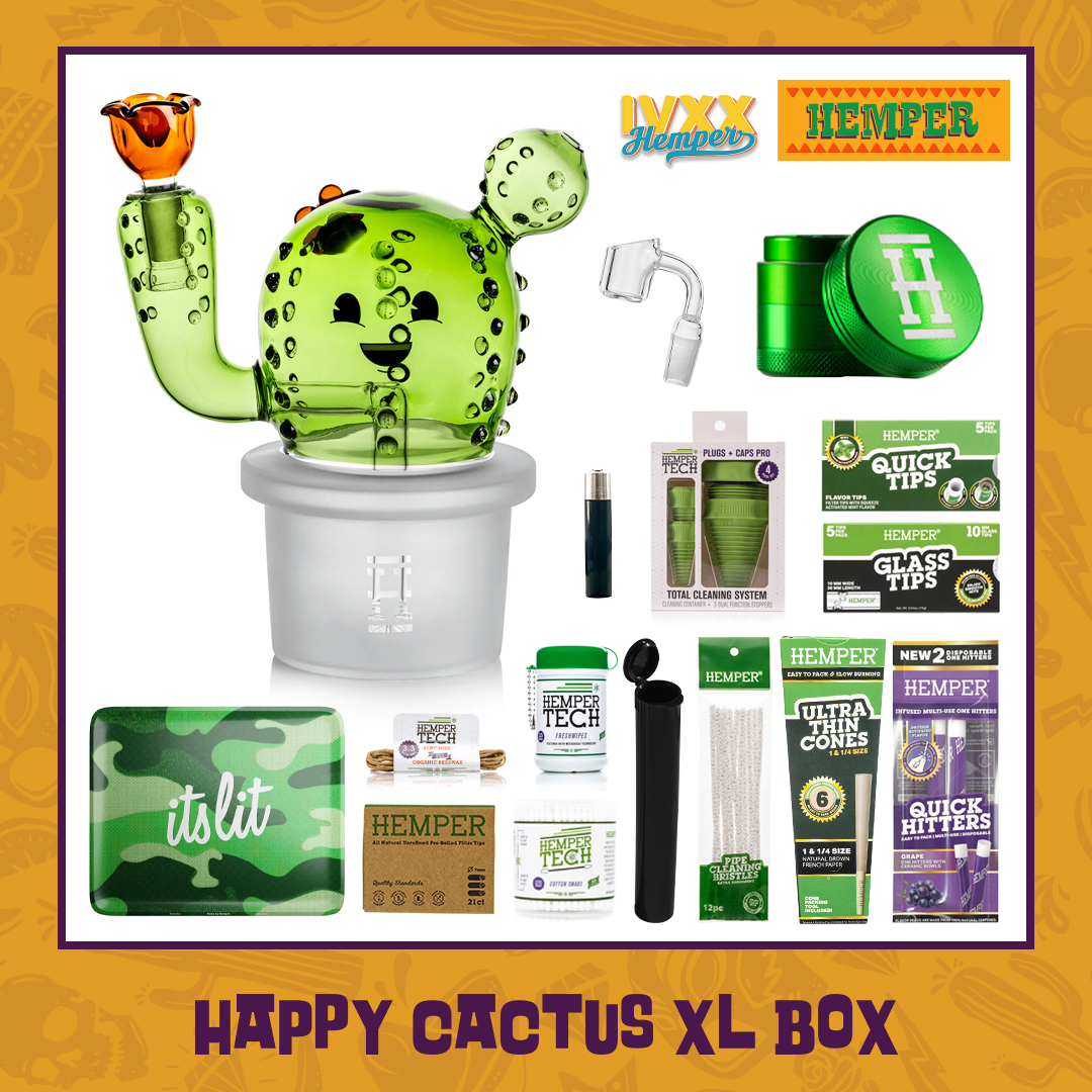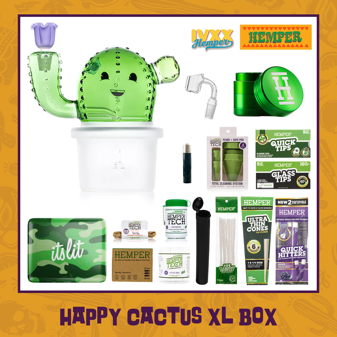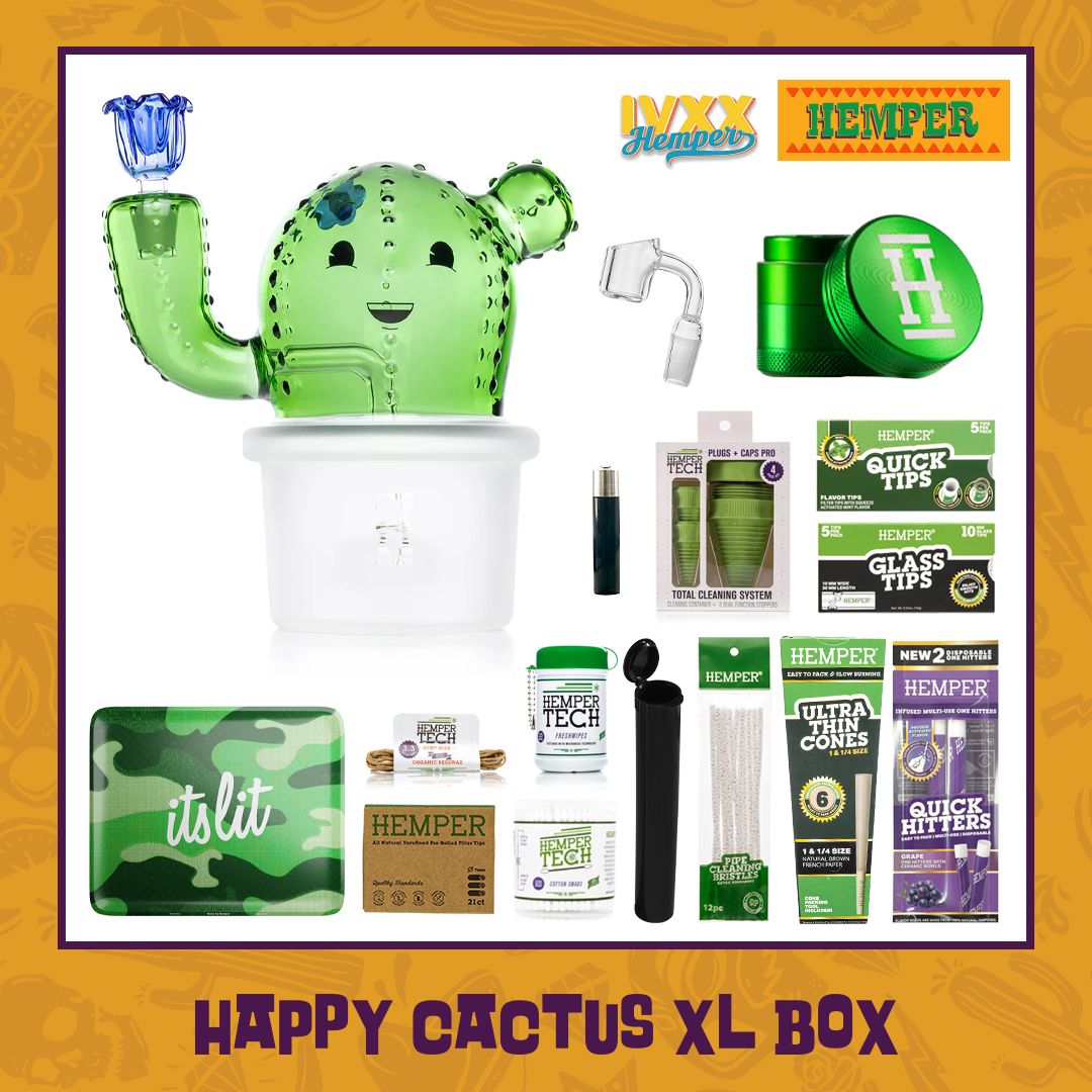Bring the desert vibes to your next session with the Happy Cactus XL Bong Box. Featuring a fun cactus-shaped glass piece, this box is also packed with must-have smoking essentials. Whether you're upgrading your setup or gifting a fellow smoker, this cheerful cactus box delivers both functionality and flair in one complete package.