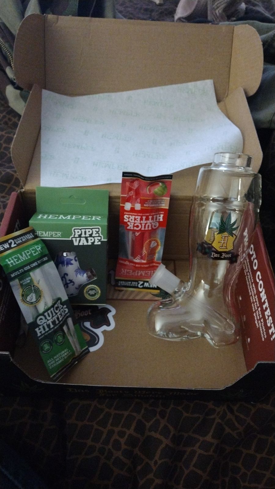 The Das Boot Box is a limited edition Hemper collection packed with festive smoking essentials. At the heart is the Das Boot Bong, inspired by the classic beer boot for a unique and eye catching design. This box also includes a quartz banger, wooden hand pipe, rolling tray, glass filter tip, beeswax hemp wick, cleaning accessories, flavored tips, cones, quick hitters, odor spray, and more, all curated to elevate your smoke sessions with style and functionality.