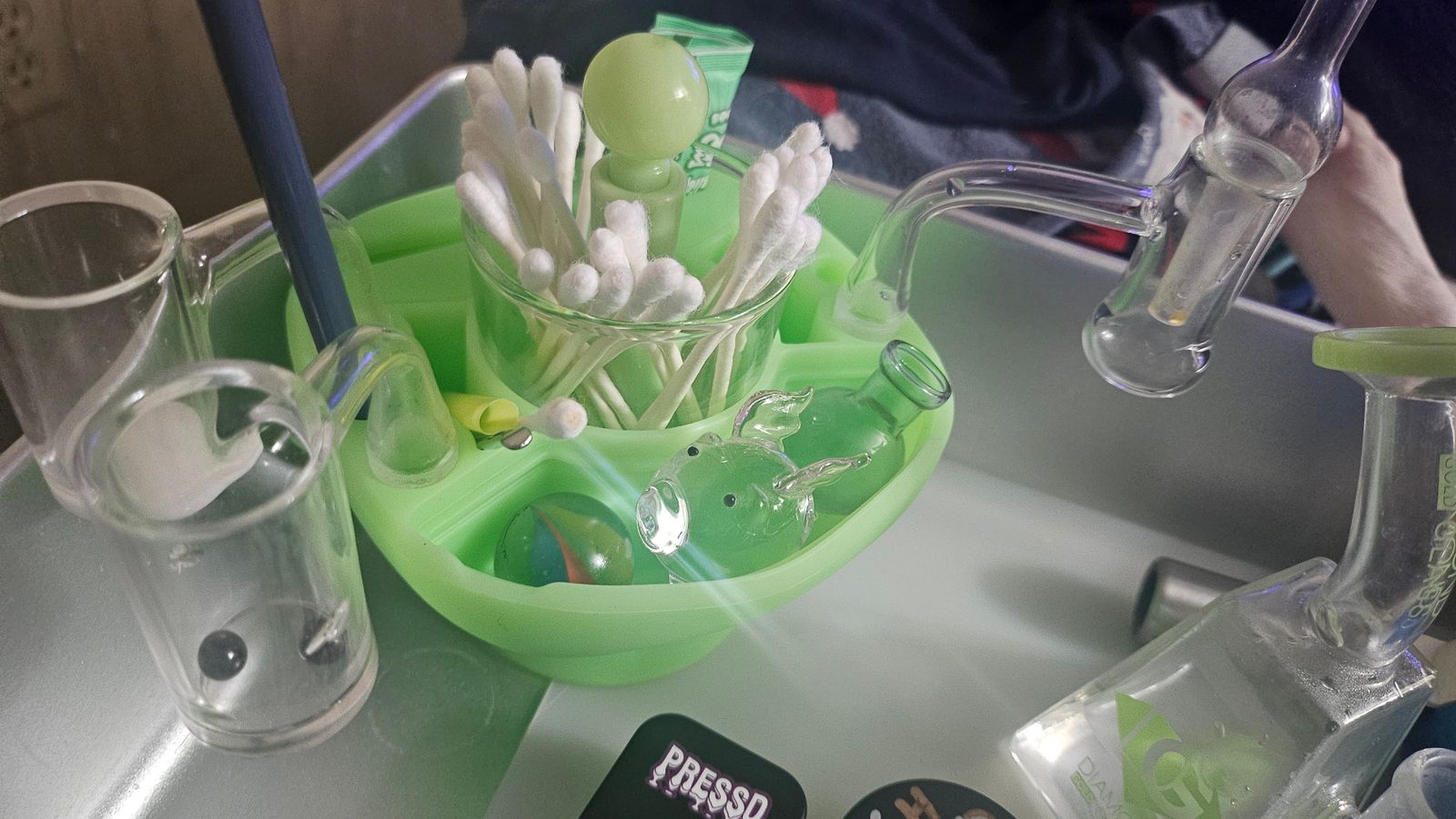 This tool and cleaning station was designed with the utmost precision and accuracy I’ve seen in an accessory. Definitely does the job in keeping my glass bangers and bowls looking spiffy, and the compartment to keep the iso and the cotton swabs for cleaning makes this among the greatest accessories for your sessions. A+
