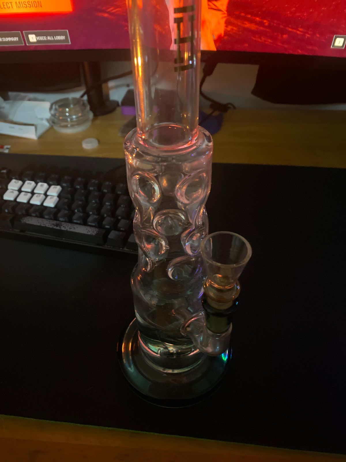 This is my daily driver bong, love it to pieces. Accidentally removed the hemper logo when I got some tape stuck to the neck, but now it inspires me to paint this thing and truly make her mine.