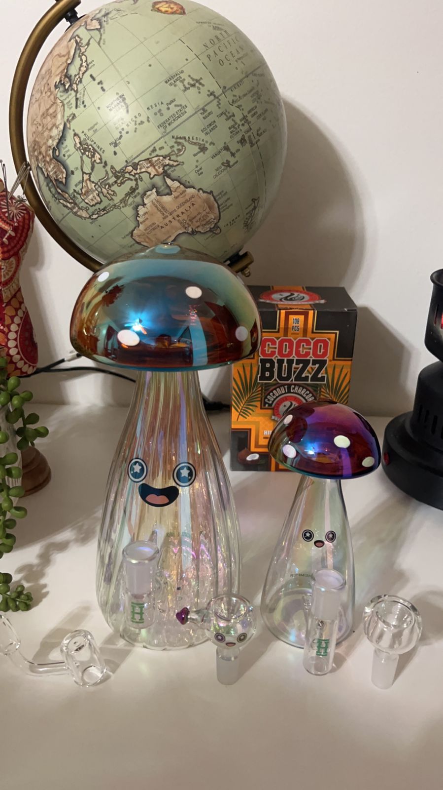 This psychedelic wonder is not just a piece; it's a trip, man. The Trippy Mushroom XL Bong's rainbow iridescent cap and clear iridescent body make it a visual phenomenon. Puff away on good vibes with the matching iridescent mushroom bowl and let this bong take you on a voyage. The Trippy Mushroom XL Bong is your ticket to mind-expanding session, dude!