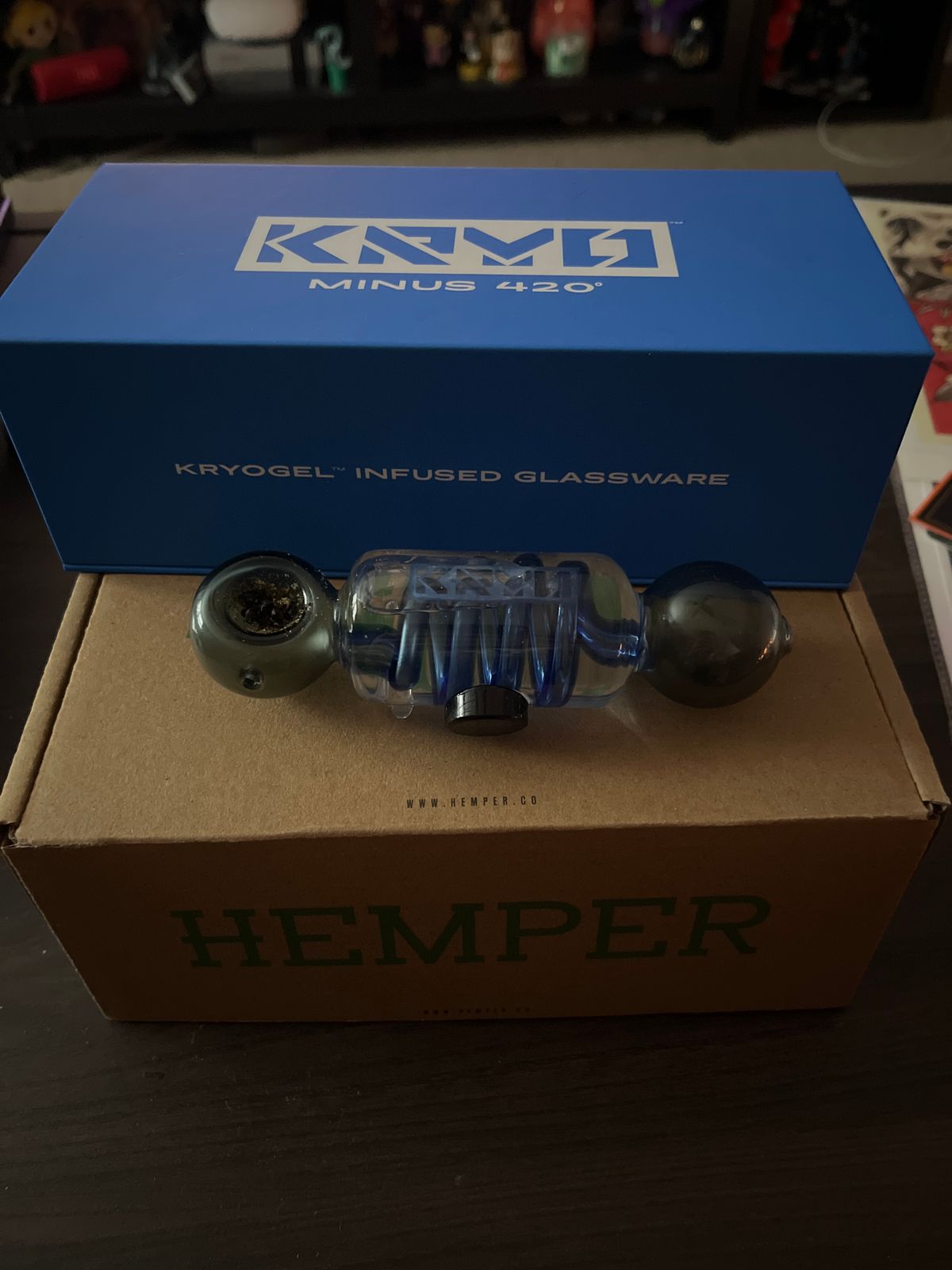 KRYO is a high-end line of freezable glassware. Each glass piece is infused with Kryogel, an all-natural freezable gel that cools down smoke to provide the smoothest experience possible while staying cold for longer.