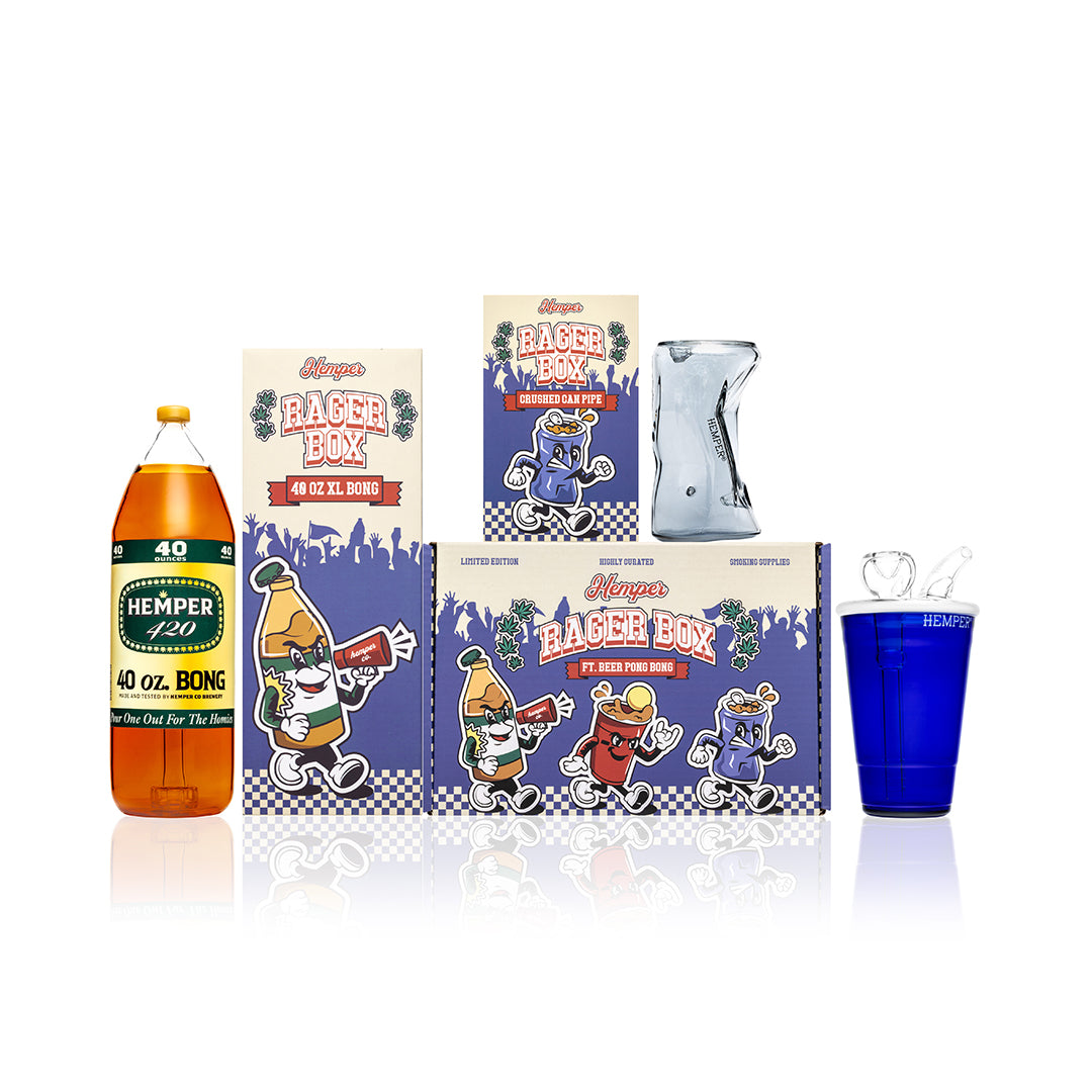 Turn every session into an all-out celebration with The Rager Family Bundle by HEMPER. This themed trio brings the full party experience straight to your smoke station, featuring three exclusive glass pieces that capture the wild energy of a true rager. The XL bong steals the show with its unmistakable 40oz-inspired silhouette—built for massive rips and serious durability. The classic bong channels the iconic red party cup aesthetic, delivering smooth, reliable hits with a nostalgic twist. Rounding out the set is the crushed-can hand pipe, a compact and flavorful hitter designed for quick sessions and on-the-go convenience.