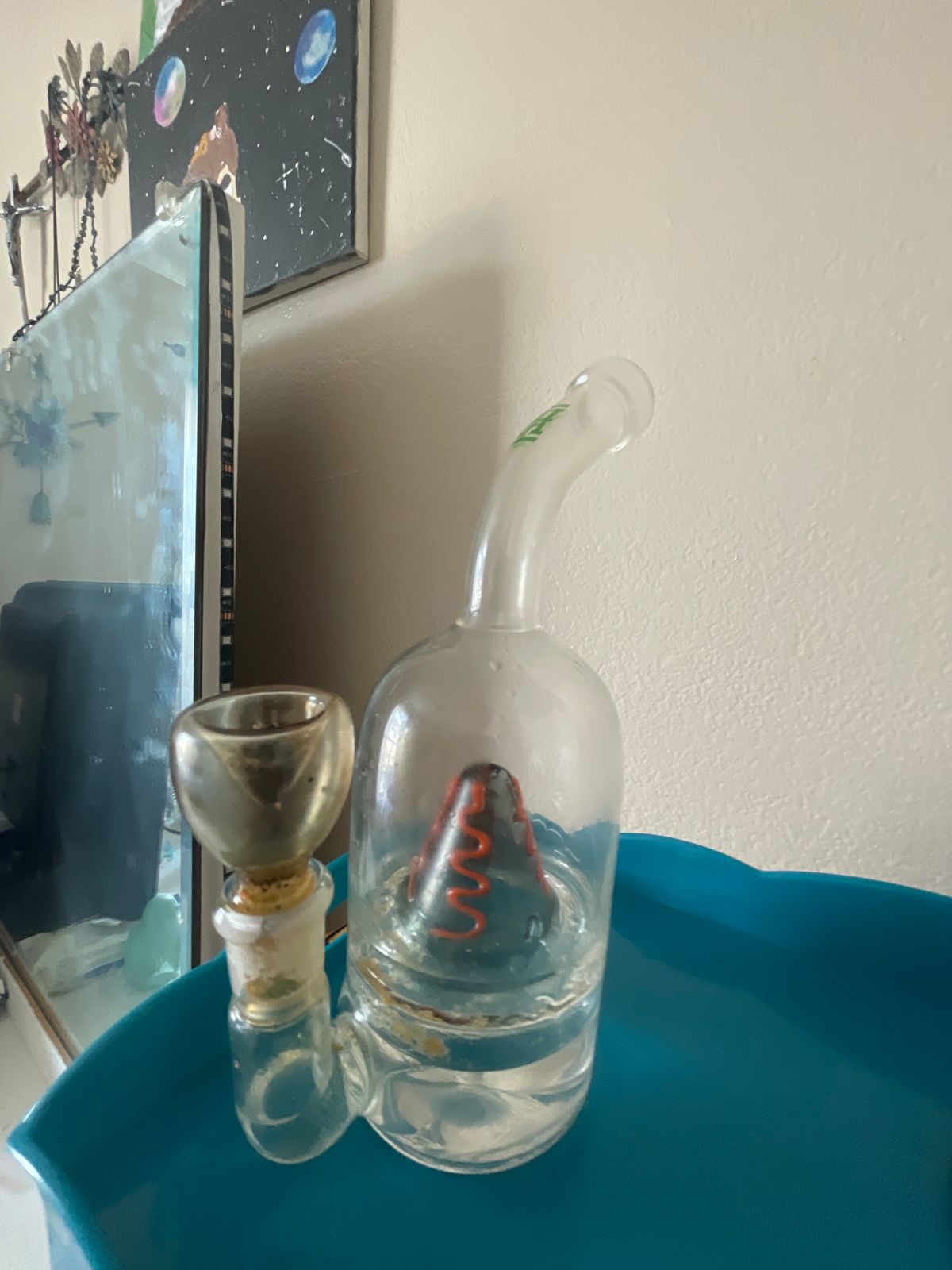 I have a few other small bongs, but they only see use for entertaining guests and looking pretty on the shelf. They all either need a water pipe adapter for the whip and/or tip over easy with the whip sitting in it.